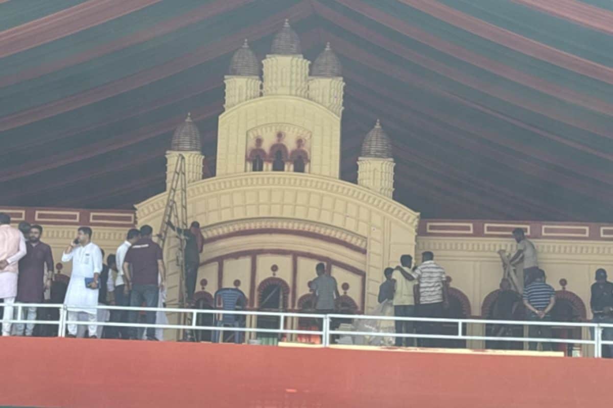 A stage modeled after Dakshineswar Kali Temple is being built for PM Modi’s rally at Brigade Parade Ground, highlighting Bengal’s cultural identity.