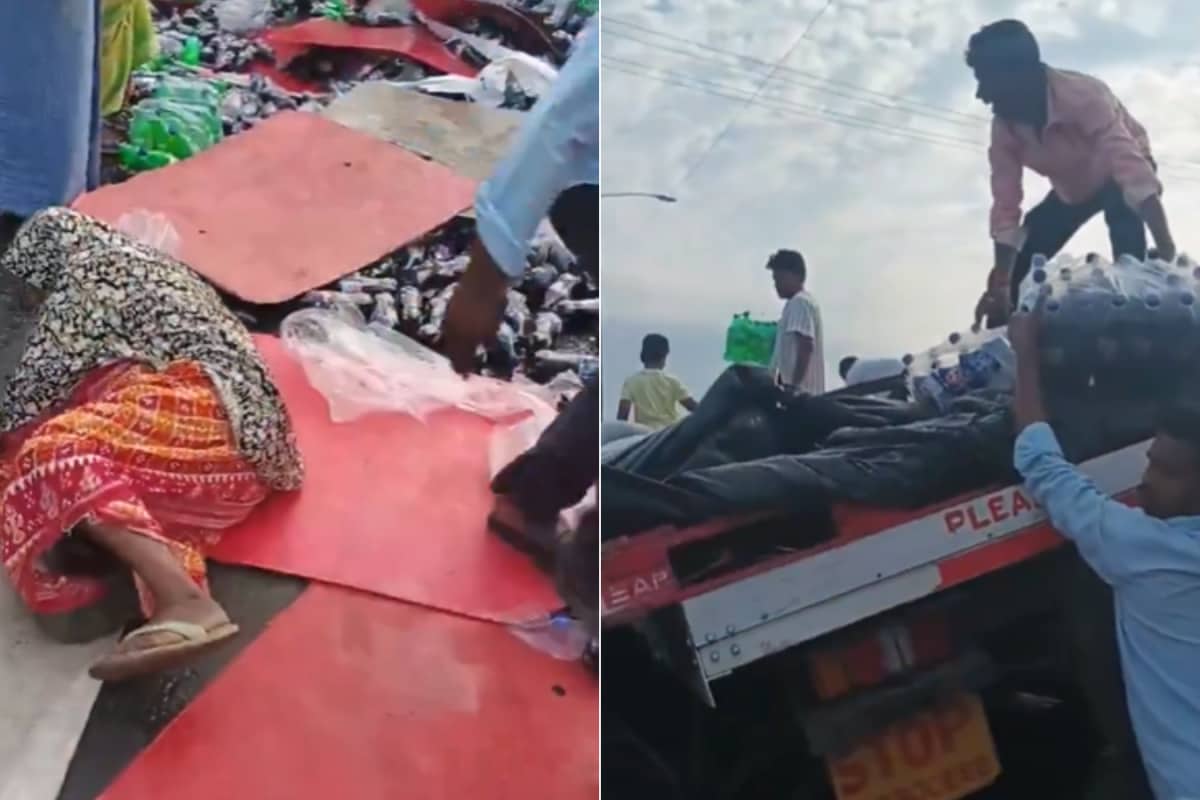 Nellore Viral Video: The video shows people rushing to grab bottles, some stumbling in their sprint to collect as many soft drinks as they can.