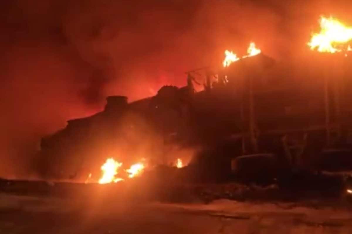 Oil Tanker Flips On National Highway, Catches Fire After Colliding With Electric Pole In UP | Video