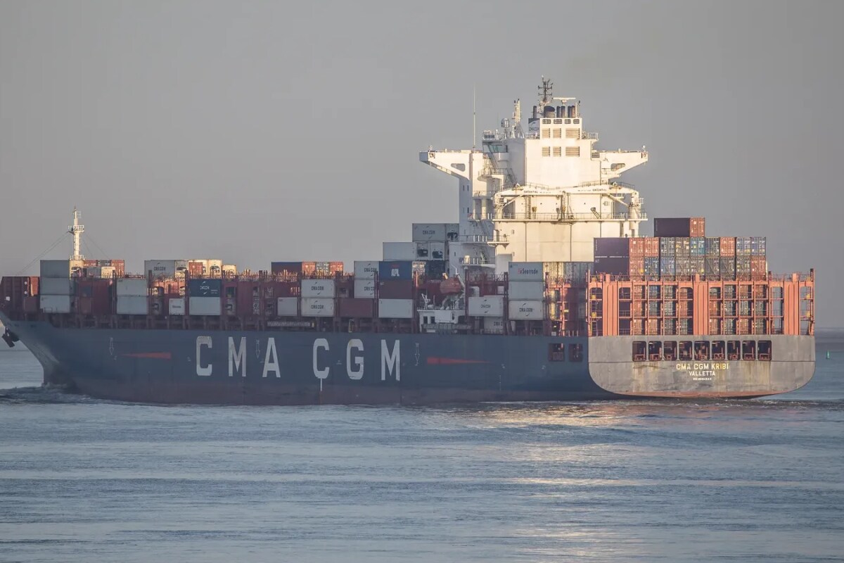 French group CMA CGM cargo ship Kribi becomes first major European vessel since March to cross Iran controlled Strait of Hormuz via paid safe corridor near Larak Island