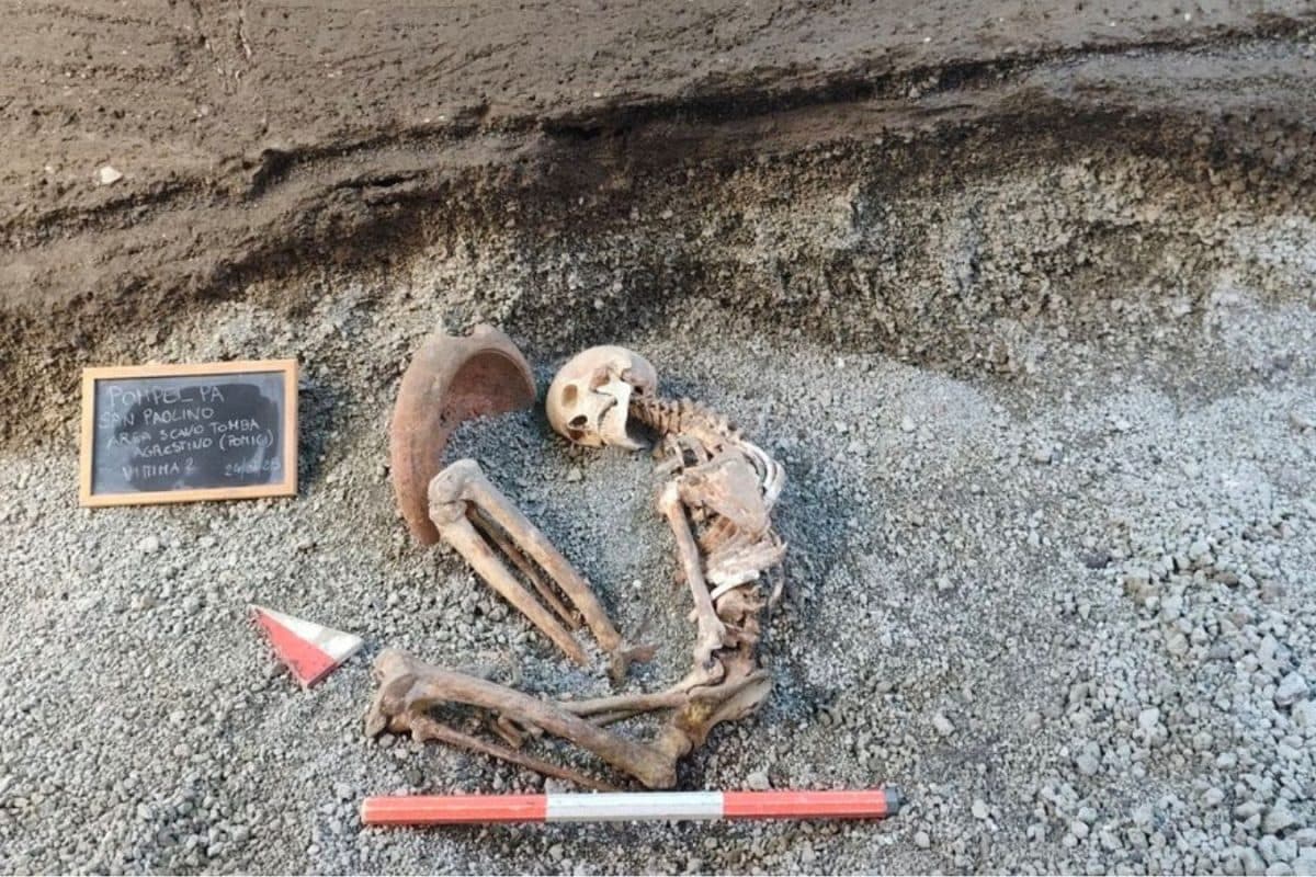 Pompeii’s ‘Mortar Man’: Archaeologists found the victim holding a terracotta mortar, which they interpret as an improvised attempt to shield his head from falling lapilli