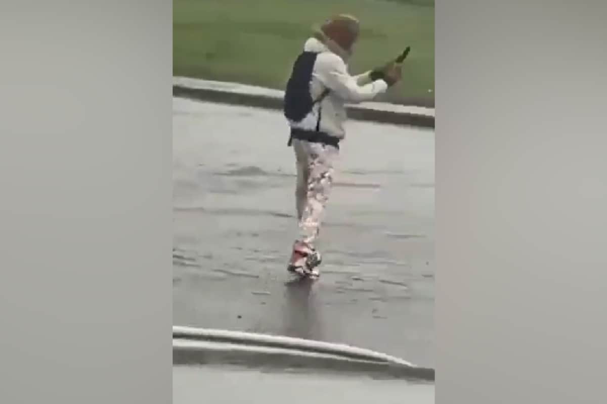 Armed police responded after a man with knives injured two people and was chased away when he tried to enter a school.