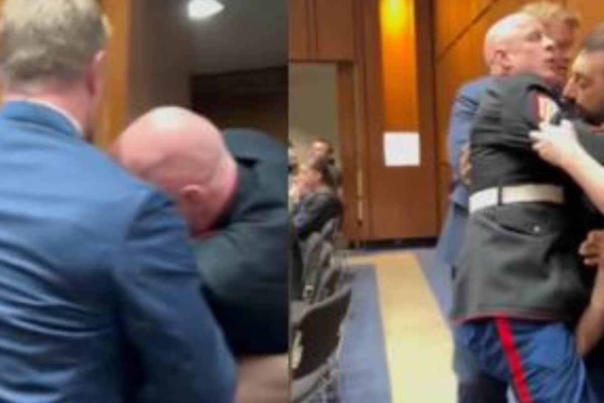 The footage shows McGuinness shouting as police officers and Senator Sheehy forcibly drag him out of the hearing room.