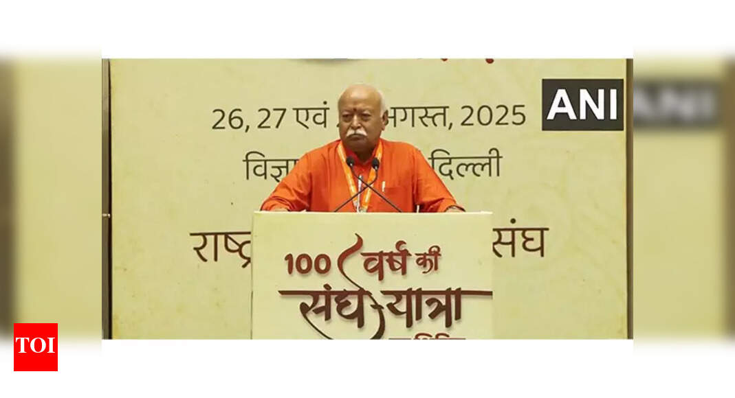 New Delhi: Casting the Rashtriya Swayamsevak Sangh’s centenary as both vindication of its importance and presentation of a fresh challenge, RSS chief Mohan Bhagwat on Tuesday said the organisation had endured a century of neglect, hostility and bans to emerge as a force of acceptance, and used the occasion to define Hindu identity as inclusive and rooted, not in territory but in devotion to Bharat Mata and the traditions of ancestors.Speaking at “100 Years Journey of RSS: New Horizons” at Vigyan Bhawan, Bhagwat said RSS’s founder Keshav Baliram Hedgewar had participated in all four streams of the freedom struggle – revolutionary, political, social reform and spiritual renaissance – and was remembered as a “born patriot.” Hedgewar, he noted, had concluded that leaders, policies and parties may be useful but are secondary to the objective of society’s transformation.Tracing the Sangh’s path, the Sarsanghchalak said, “there is much discourse regarding the Sangh… the available information is limited and often inauthentic. It is imperative to present the truth and accurate details,” urging people to form a view about the organisation “based on facts and not on perception”.As he traced Sangh’s journey, a micro movie showed a 3,000-strong RSS contingent participating in the Republic Day parade of 1963 at the instance of Nehru, “the very same person”, the commentary emphasised, “who had banned the organisation citing the assassination of Gandhi. He said that Sangh believed in bringing people together and welding them into a team for the pursuit of building India as a powerful nation. “Coming together is beginning, staying together is progress and working together is success,” said Bhagwat as he detailed the process of sculpting an individual into the “new man” of RSS’s conception, right since their initial days in an RSS Shakha.Despite bans, attacks and vilification, the Sangh had spread from small beginnings to every corner of the country, he said, because of the selfless dedication of swayamsevaks. With no paid staff and no external funding, the organisation continued to grow only on the basis of voluntary efforts.The gathering reflected the wider audience the Sangh seeks to engage, drawing diplomats from over two dozen embassies, including major powers and neighbours; members of think tanks such as ORF, Infinity Foundation, HSS and TEDx India; and corporate representatives. The lecture series will continue till Thursday with Bhagwat scheduled to engage with Indian and international voices.