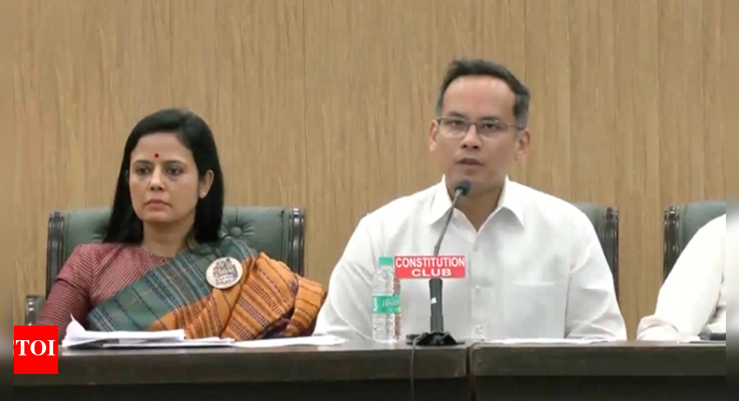 NEW DELHI: The INDIA bloc on Monday intensified its attack on the Election Commission, accusing it of misconduct in recent elections and questioning its decision to conduct a special intensive revision (SIR) of electoral rolls in Bihar just ahead of the state polls. Citing alleged irregularities in Maharashtra and Karnataka, leaders sharpened their criticism, with TMC’s Mahua Moitra even urging to “dissolve Lok Sabha immediately.”The joint press conference, held at the Constitution Club of India, was attended by senior opposition leaders including Congress MP Gaurav Gogoi, SP’s Ramgopal Yadav, TMC’s Mahua Moitra, RJD’s Manoj Jha, AAP’s Sanjay Singh and others.Congress MP Gaurav Gogoi alleged that the EC failed to address serious concerns. “EC silent on voter additions in Maharashtra, discrepancies in rolls in Mahadevapura, video data deletion,” he said. Gogoi further added, “EC in hands of officers who are taking sides, not probing any charges made by Opposition.”At the presser, Congress leader said, “EC should first provide an affidavit that the voter list is clean, then we’ll comply.”Criticising the poll body’s recent actions, Gogoi remarked, “In its press conference yesterday, the EC (Election Commission) raised questions about the political parties when they had to explain why they were conducting SIR in a hurry. EC was silent on SIR in Bihar. They were also silent on how new 70 lakh voters were added between Lok Sabha and Maharashtra Assembly elections… It is clear that EC is under such officials who are not unbiased.”TMC MP Mahua Moitra also raised concerns, saying, “West Bengal CM raised issue of duplicate EPIC voter cards, but issue not resolved.” She went on to demand accountability, adding, “Action should be taken against past ECs for ‘fraudulent’ voter lists, dissolve Lok Sabha immediately.”Shiv Sena (UBT) leader Arvind Sawant also hit out at the EC, saying, “The whimsical behaviour of the CEC made it seem like he was acting as a BJP spokesperson.”