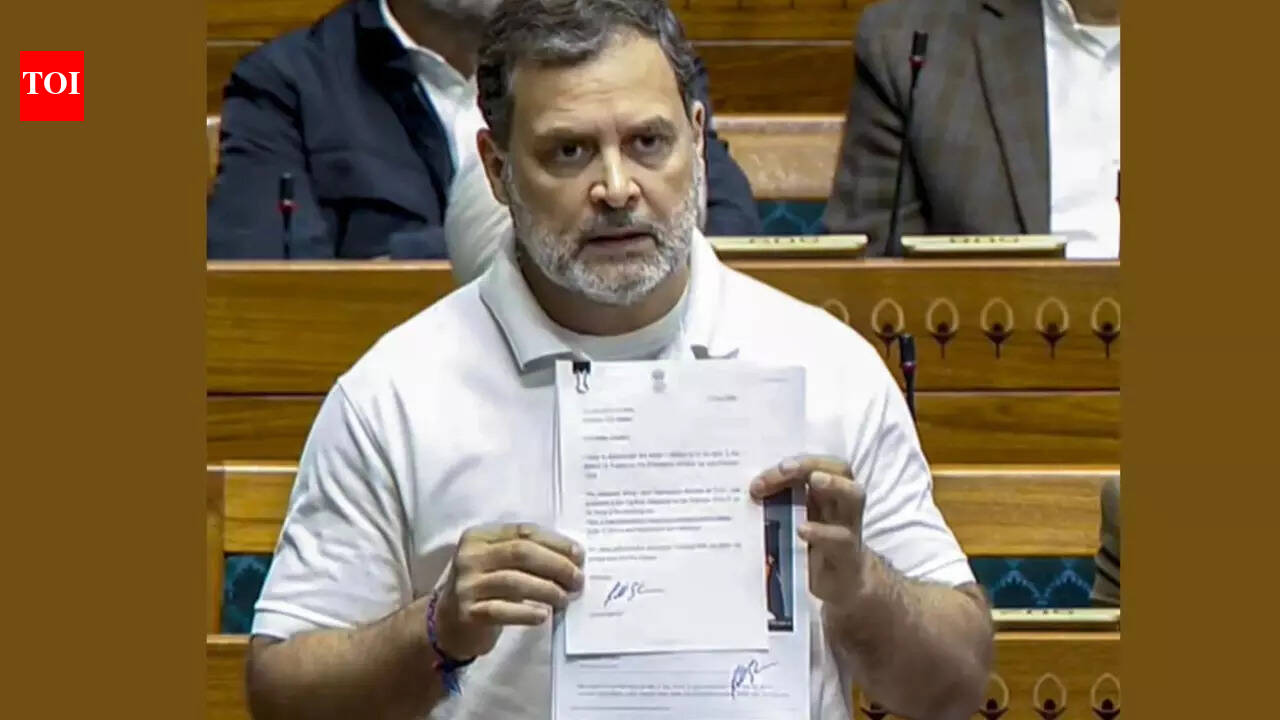 NEW DELHI: As the united opposition raised an alarm over the US trade deal “selling away the blood and sweat” of Indian farmers, Congress neta Rahul Gandhi Tuesday said PM Narendra Modi is “compromised” because of the court case against Adani in the US and the Epstein files. He said the PM suddenly signed off on the trade deal because he is under “pressure”.Rahul said the case against Adani basically targets the PM because the business leader represents the financial structure of Modi and BJP, while the US has not yet released the full material they have on Epstein Files. “These are the two pressure points, and the country should understand that the PM is compromised,” he told reporters.The leader of opposition in Lok Sabha said the issue about General M M Naravane’s purported memoirs that he wanted to speak on in the House is a “sideshow”. “The country has to think hard about why the PM is compromised, and who has compromised him,” he remarked.Sharpening his attack, Rahul said Modi signed the US trade deal after it was stuck for four months, and on which nothing had changed. He said, “Modi is scared. He is under tremendous pressure, and the balloon of his image that has been created by spending crores, can burst.” Rahul added, “Indian farmers must understand that Modi has sold off their hard work and their blood and sweat through this trade deal. And he has done so because he is compromised. And he has not only sold off the farmers but sold off the country.”Samajwadi Party, DMK, Left parties, TMC and others joined hands in raising questions about the Indo-US deal. MP Randeep Surjewala said announcements by the US agriculture secretary and US President Donald Trump have made it clear that “Americal agricultural products will come to India on zero tariffs and flood the Indian markets, to the detriment of Indian farmers.”The opposition demanded that the trade deals with the US and the European Union be tabled in Parliament and debated.AICC spokesman Jairam Ramesh underlined that the deal was announced by Trump Monday night, just like he had announced the halting of Operation Sindoor. “From the information President Trump has provided, it is abundantly clear that PM Modi has — like he did on May 10, 2025 — completely surrendered. He has most definitely appeased President Trump. India stands diminished by this unfortunate sequence of events,” Ramesh said.