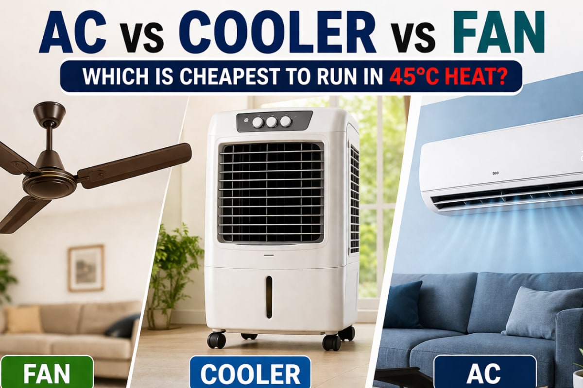 AC Vs Cooler Vs Fan: Electricity Cost Comparison In India For 45°C Heat (2026 Guide)
