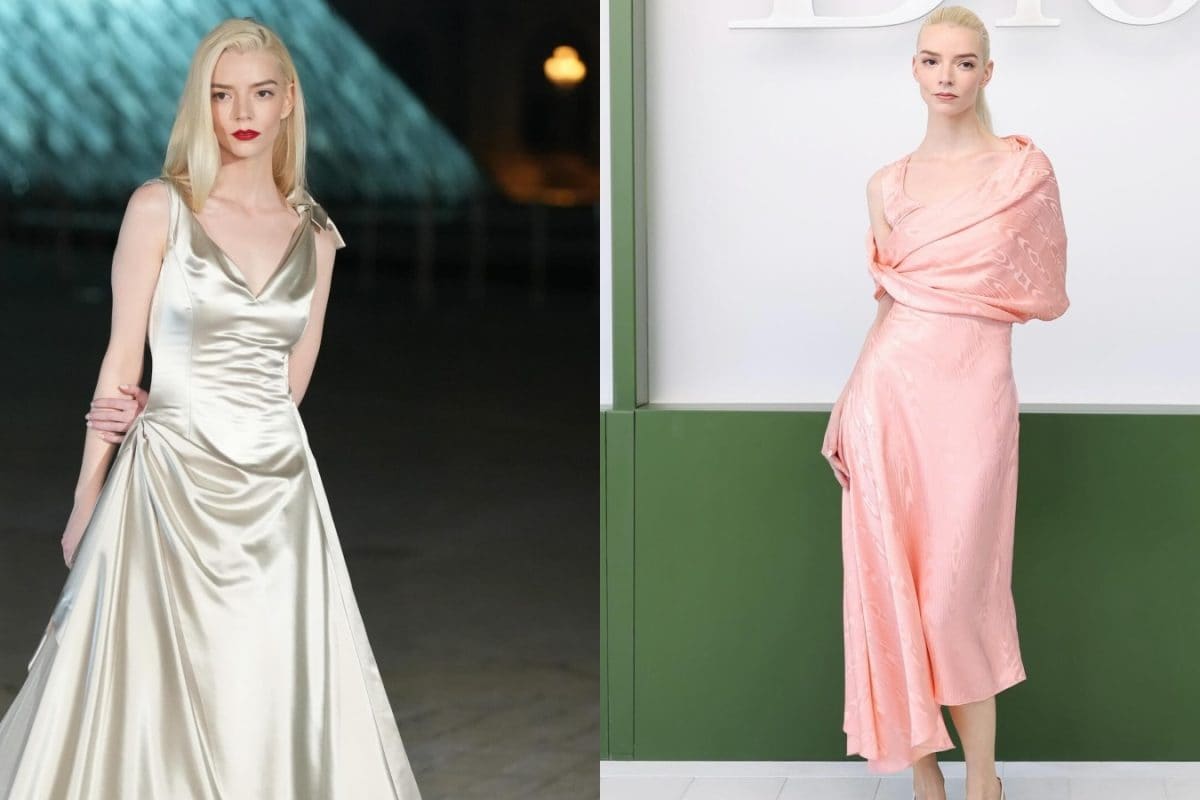 Anya Taylor-Joy is in Paris and has showcased 2 Dior looks that scream elegant sophistication in a radiant peach slip dress and a custom champagne-toned midi dress.