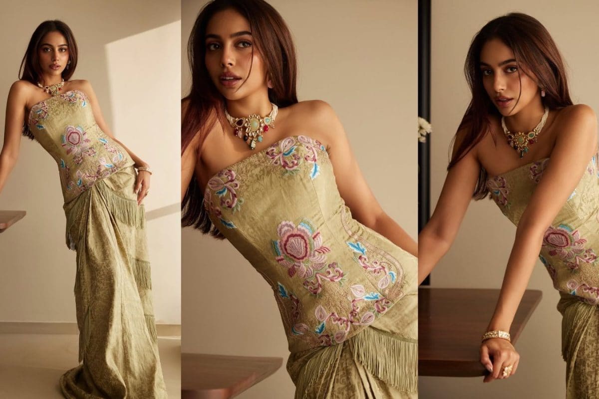 The actor turned heads in an intricately embroidered Anamika Khanna ensemble at Arjun Tendulkar and Saaniya Chand