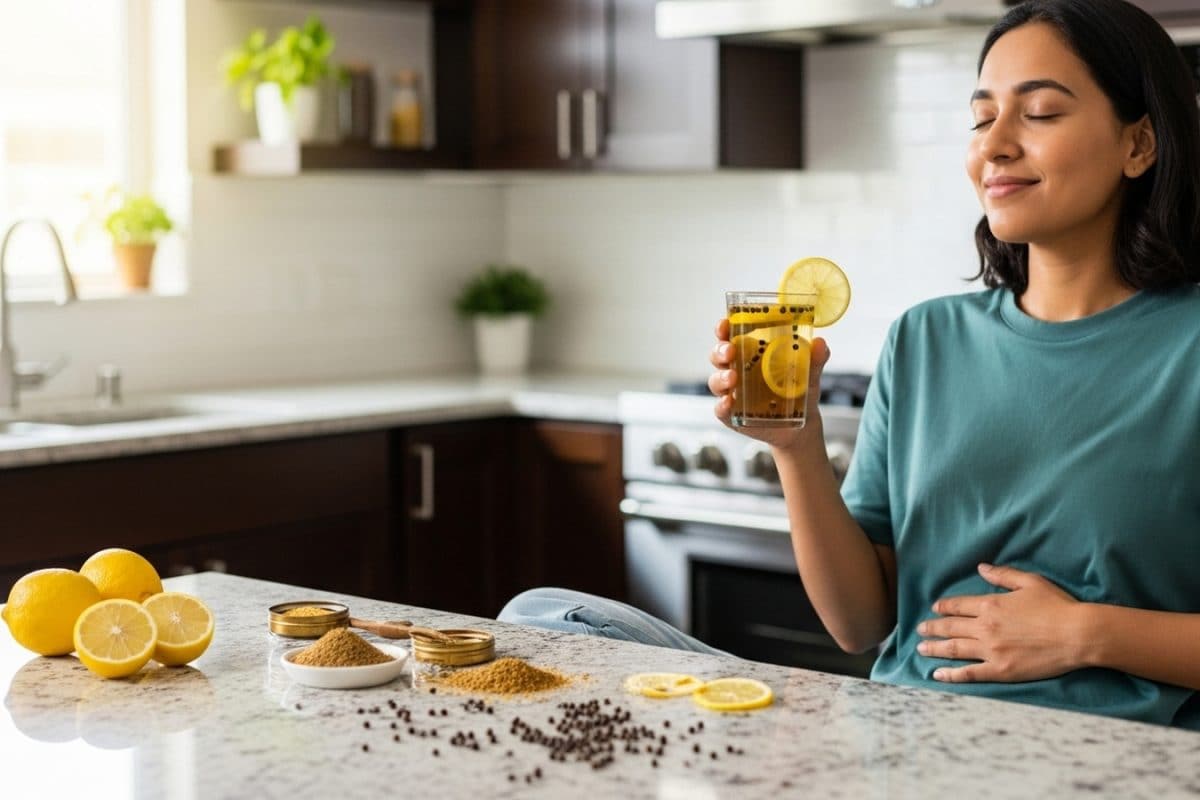 Struggling with bloating and gas? This simple Ayurvedic drink made with lemon, hing, and black pepper may help ease discomfort naturally in just a few minutes