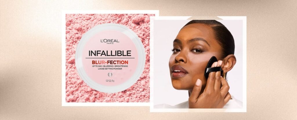 Using a small amount ensures makeup products for beginners look natural. Loose powder supports other makeup products for beginners by improving durability and smoothness.