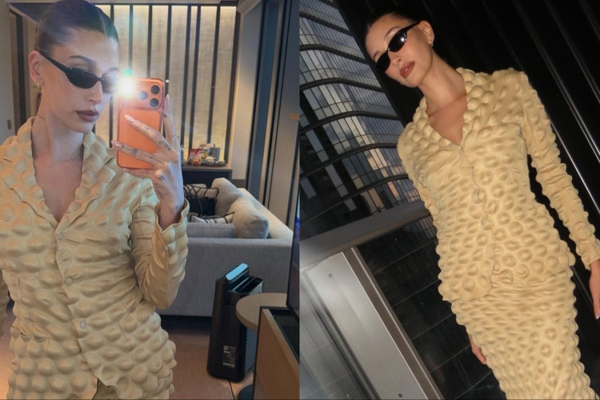 Sculptural, rare and collectible, here’s why Hailey Bieber’s vintage Issey Miyake set is a masterclass in timeless dressing.