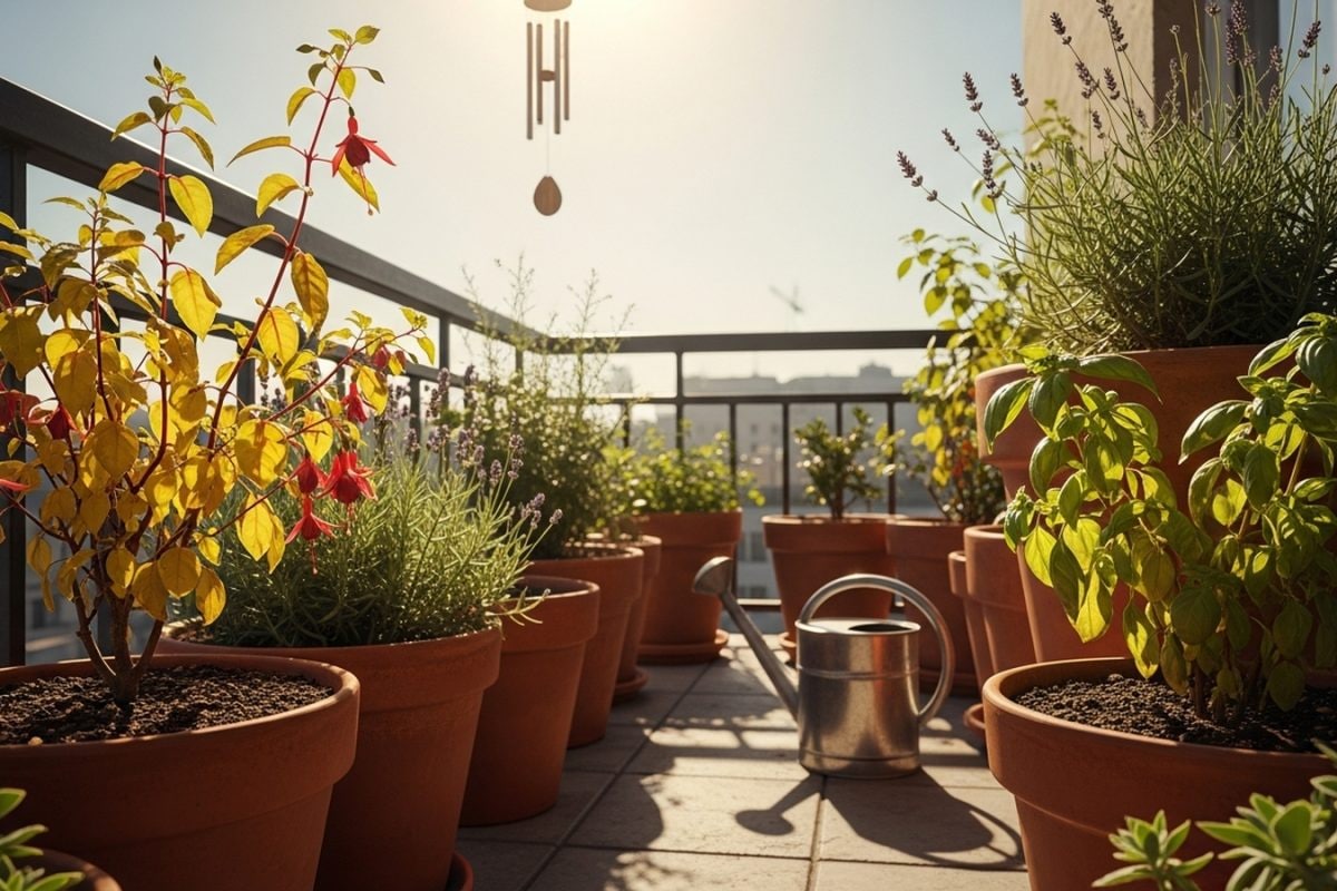 Unlike soil in the ground, pots heat up faster, lose moisture quickly, and offer limited insulation to roots in your balcony garden.