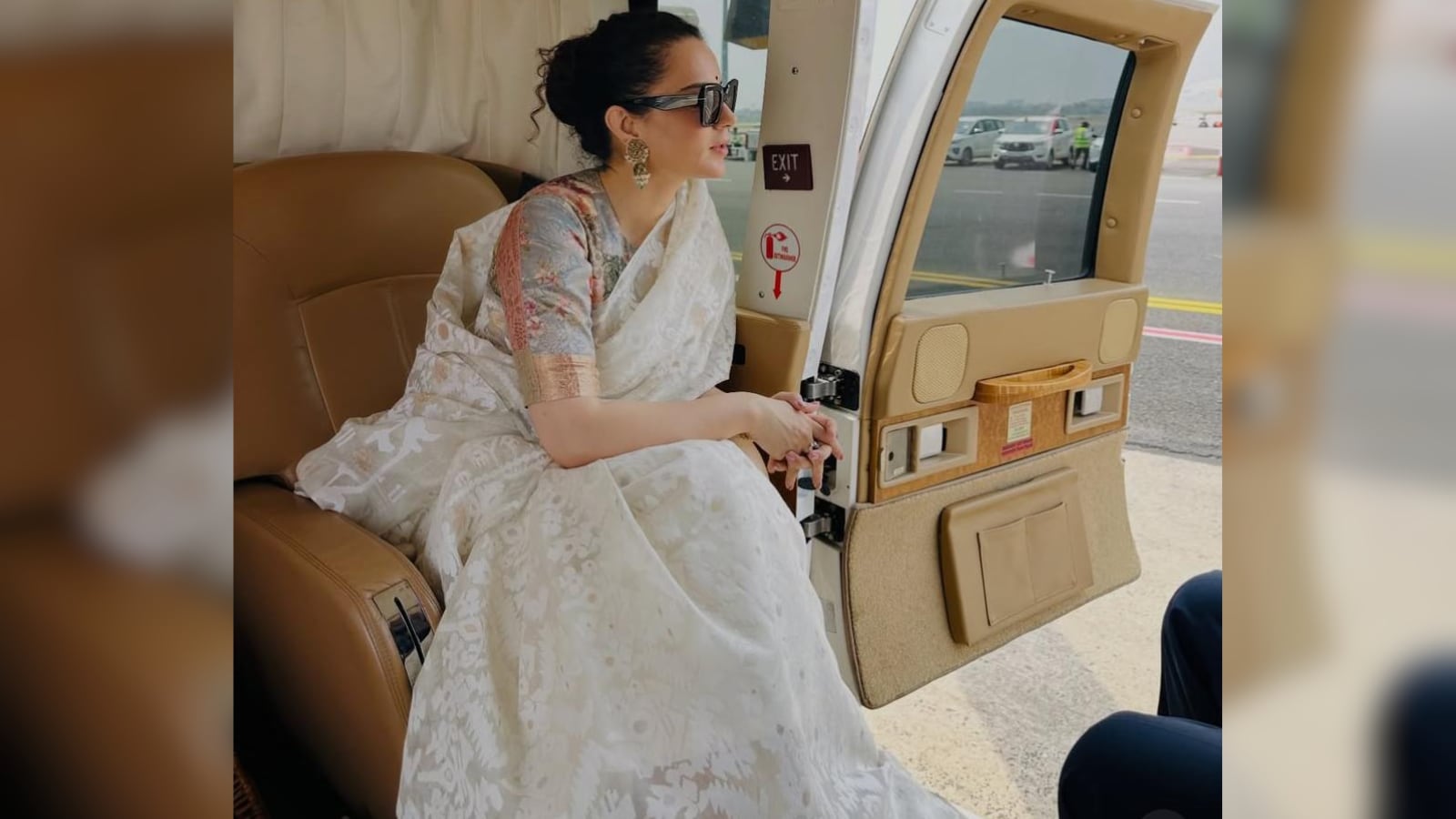 Kangana chose a pristine white Jamdani saree in lightweight cotton fabric with delicate floral motifs and intricate traditional patterns inspired by Bengal’s textile heritage.