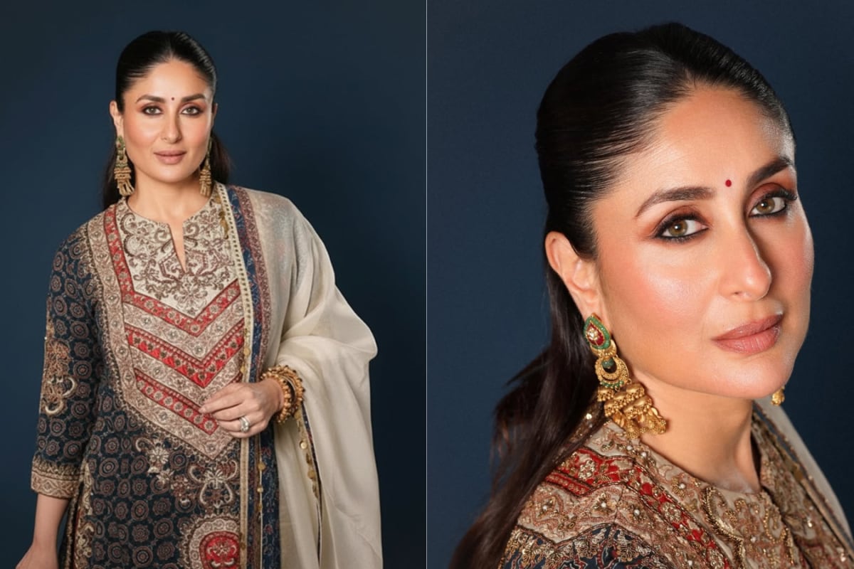 Kareena Kapoor stuns in a regal salwar suit and heavy gold earrings, redefining ‘begum core’. Here’s how to recreate her elegant ethnic look.