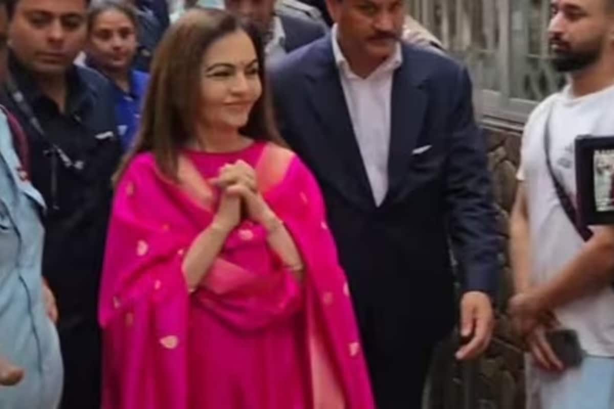 Nita Ambani visits Maa Kamakhya Temple in Guwahati, dressed in an elegant pink silk suit paired with diamond jewellery, blending tradition with timeless style.