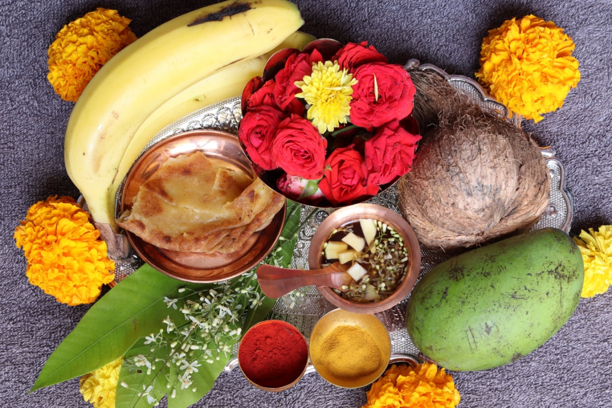 Ugadi celebrates new beginnings with sweets like obbattu, bobbatlu, and polelu- golden flatbreads filled with chana dal and jaggery, central to the South Indian New Year meal