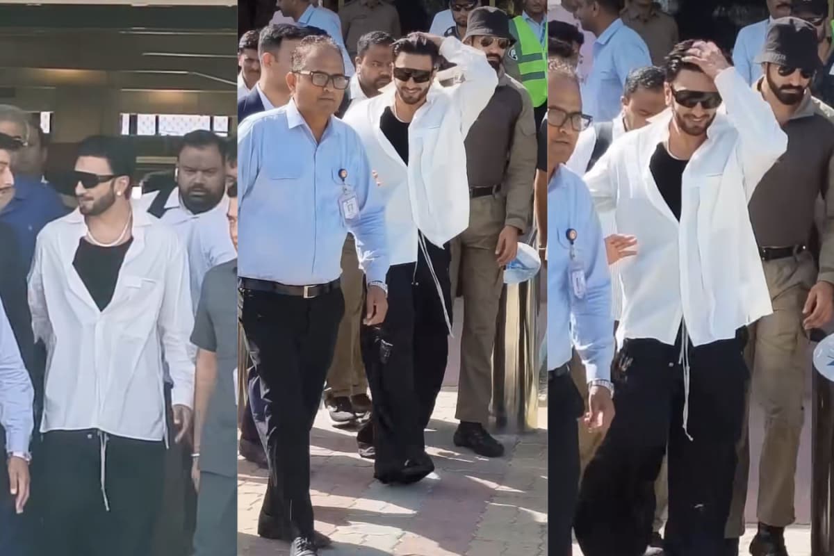 Ranveer Singh embraces understated style in a relaxed monochrome look as he arrives in Jamnagar for Anant Ambani’s birthday celebration, amid the roaring success of Dhurandhar 2.