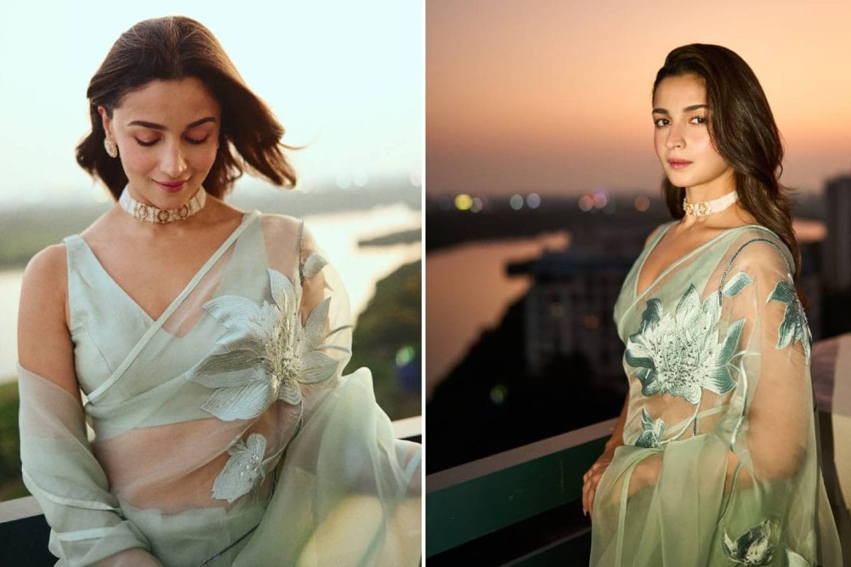 Alia Bhatt stuns in mint green organza saree on Instagram, echoing her Met Gala 2024 Sabyasachi look.