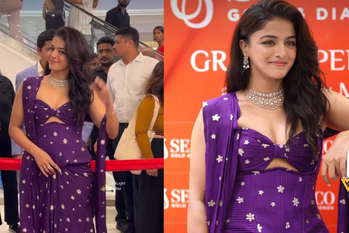 Wamiqa Gabbi turns heads in a ₹48,000 Karishma Ashita deep purple corset saree paired with Senco Gold and Diamonds jewellery at a recent store launch. See details.
