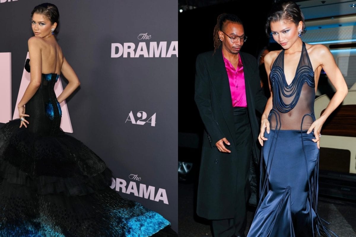 This is the second time that actor Zendaya has opted for a blue ensemble as her ‘something blue’ for the marriage-based rom-com film she is currently promoting.